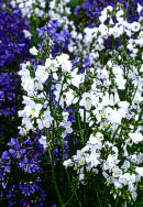 staude med finnete blader og blå eller hvite blomster i store klaser.. Dufter. Sprer seg lett med selvsåing. 40-50 cm. Juni-Juli. |
